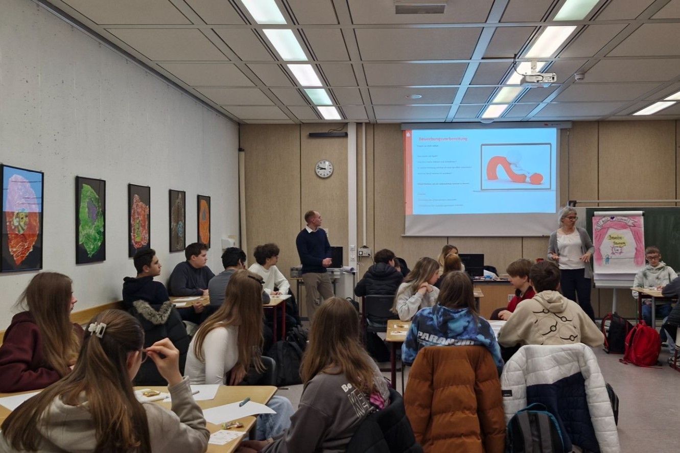An einem besonderen Bewerbungstraining, das von der Sparkasse Hochfranken angeboten wurde, durften die Schülerinnen und Schüler der 9. Jahrgangsstufe teilnehmen. In nur 90 Minuten erhielten die Jugendlichen wertvolle Tipps und praxisnahe Einblicke rund um das Thema Bewerbung. Geleitet wurde der Workshop von Frau Daniela Haag, die mit viel Engagement und Erfahrung die wichtigsten Stationen eines Bewerbungsprozesses erläuterte. Unterstützt wurde sie dabei von Herrn Ritter, der als Auszubildender der Sparkasse Hochfranken den Schülerinnen und Schülern aus erster Hand berichten konnte, wie ein Auswahlverfahren abläuft und worauf Personaler besonders achten.Im Fokus standen das Verfassen überzeugender Bewerbungsschreiben, das richtige Auftreten im Vorstellungsgespräch sowie das Verhalten beim Assessment Center. Die Jugendlichen hatten die Möglichkeit, ihre eigenen Fragen zu stellen und in kleinen Gruppen verschiedene Situationen zu üben. Besonders die authentischen Beispiele und ehrlichen Erfahrungsberichte von Herrn Ritter fanden großen Anklang.