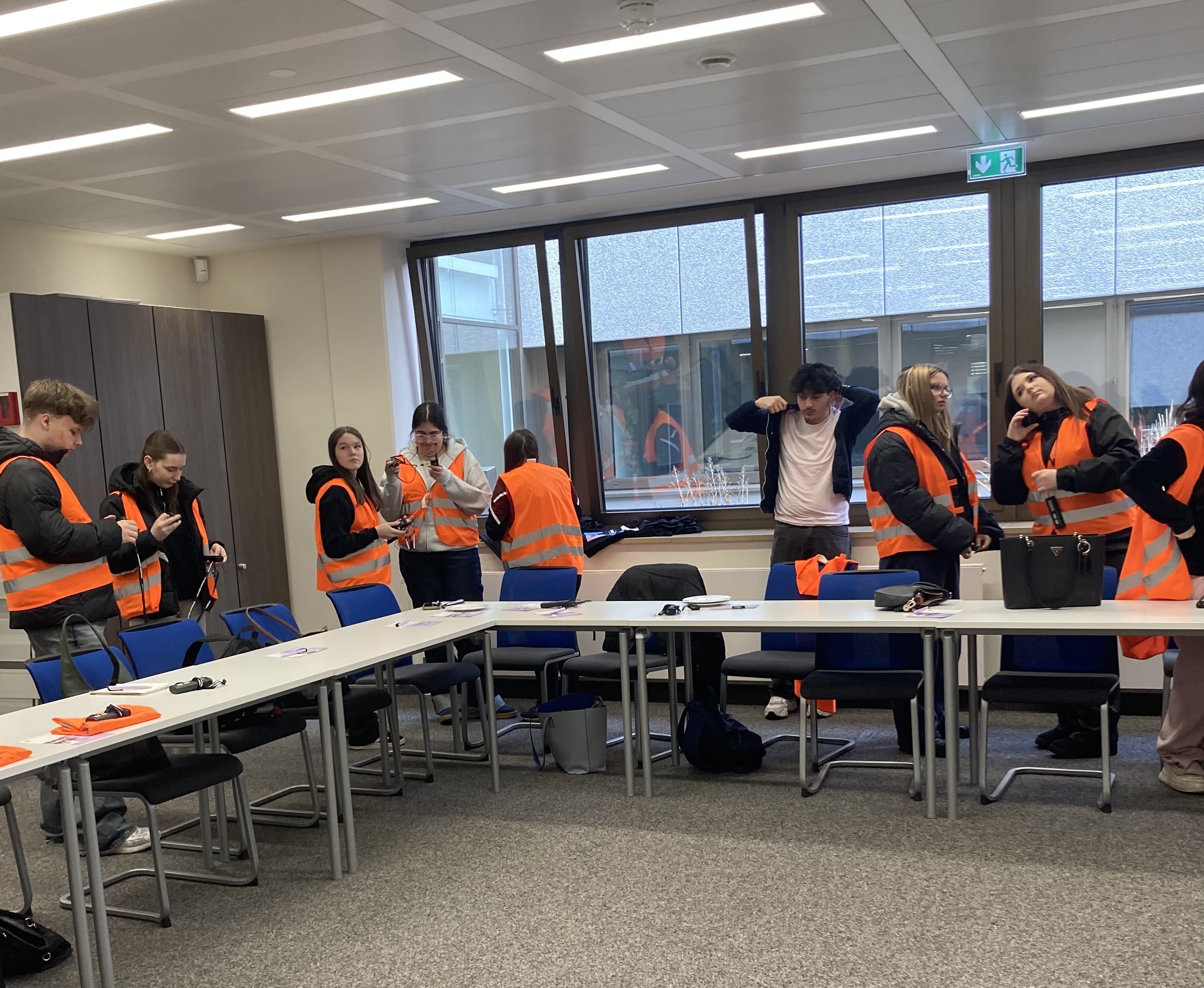 Darüber hinaus war zentrales Thema der Besichtigung die Nachhaltigkeit. Das Unternehmen legt großen Wert darauf, verantwortungsvoll mit Ressourcen umzugehen und sowohl ökologisch, ökonomisch als auch sozial nachhaltig zu handeln. In diesem Zusammenhang setzten sich die Schüler in Gruppen intensiv mit den 17 Zielen für nachhaltige Entwicklung (SDGs) auseinander. Dabei reflektierten sie auch ihr eigenes Verhalten und ermittelten exemplarisch ihren persönlichen CO₂-Fußabdruck. Diese Auseinandersetzung trug dazu bei, das Bewusstsein für nachhaltiges Handeln im Alltag zu stärken und die Frage zu stellen: „Was kann ich selbst tun?“
