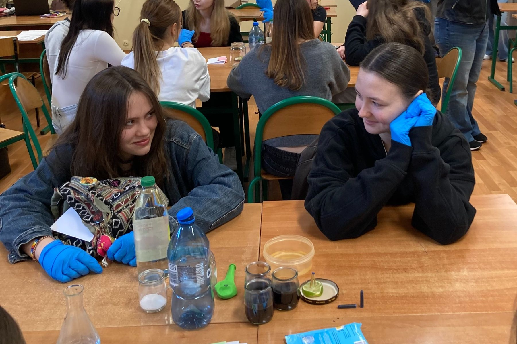 Naturwissenschaftliches Arbeiten stand am Freitag im Fokus. Im Chemieunterricht auf Englisch wurden verschiedene Experimente durchgeführt. Besonders eindrucksvoll war ein Klassiker: Ein Luftballon blähte sich „wie von Zauberhand“ auf, als Essig und Backpulver miteinander reagierten. Dabei entstand Kohlendioxid – ein anschauliches Beispiel für eine chemische Reaktion. Ein weiteres Highlight des Tages war der Kalligrafie-Workshop, bei dem die Schülerinnen und Schüler deutsche und polnische Sprichwörter kunstvoll zu Papier brachten. Auch der kulinarische Kochkurs bleibt in bester Erinnerung: In einer Kochwerkstatt bereiteten die Teilnehmenden gemeinsam für rund 30 Personen ein mehrgängiges Menü zu, das allen hervorragend schmeckte.