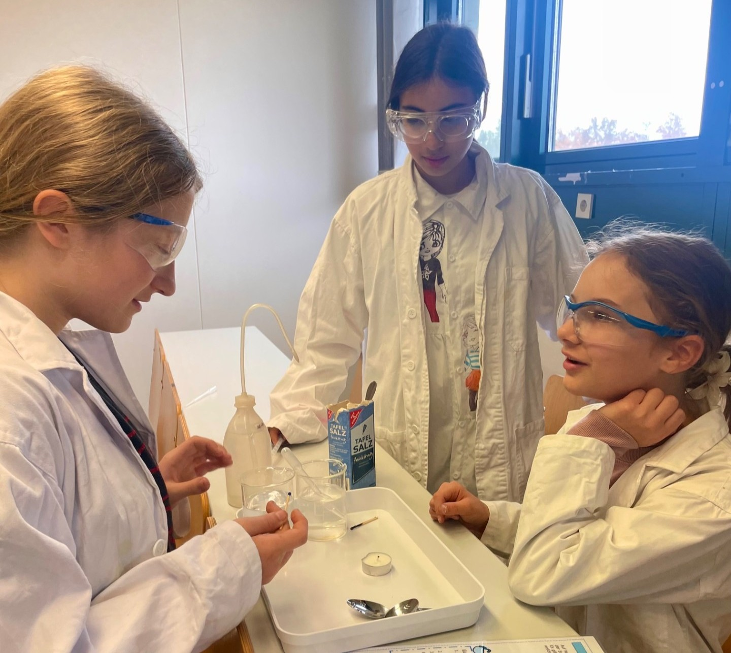 Einmal empfinden wir das Wasser einer bestimmten Temperatur als kalt und manchmal als warm. Aber weshalb ist das so? Dieses und viele anderer Phänomene aus dem Alltag dürfen alle Schülerinnen und Schüler unserer 5. Jahrgangsstufe diese Woche selbst untersuchen und mit Hilfe von Versuchen die Erklärung finden. Dabei bekommen sie wertvolle Tipps von unserem schuleigenen „Außerirdischen WAGJ“, dessen Raumschiff direkt neben der Schule gelandet ist. So wurde fleißig erhitzt, gerührt oder geföhnt, um zu den richtigen Erkenntnissen zu gelangen. Gleichzeitig machten die jungen Forscherinnen und Forscher auch die Erfahrung, dass Experimente nur dann gut gelingen, wenn man im Team zusammenarbeitet und sich bei den Arbeitsschritten gegenseitig unterstützt. Mit Motivation und Konzentration konnten alle Fragen, die WAGJ gestellt hatte, von den Arbeitsgruppen beantwortet werden. Ein herzliches Dankeschön an das Studienseminar Chemie für die Unterstützung bei der Vorbereitung und Durchführung des Projektes!