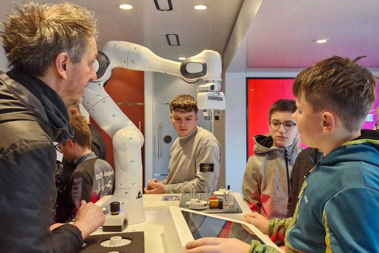 Ein besonderes Highlight des Tages war der Besuch des M+E Info Trucks. Dieser mobile Erlebnis-Lernort informierte die Jugendlichen anschaulich über die vielfältigen Berufe und Karrierechancen in der Metall- und Elektrobranche. An verschiedenen interaktiven Stationen konnten die Schülerinnen und Schüler selbst Hand anlegen, zum Beispiel bei spannenden Experimenten mit Elektronik oder beim Ausprobieren von technischen Geräten.