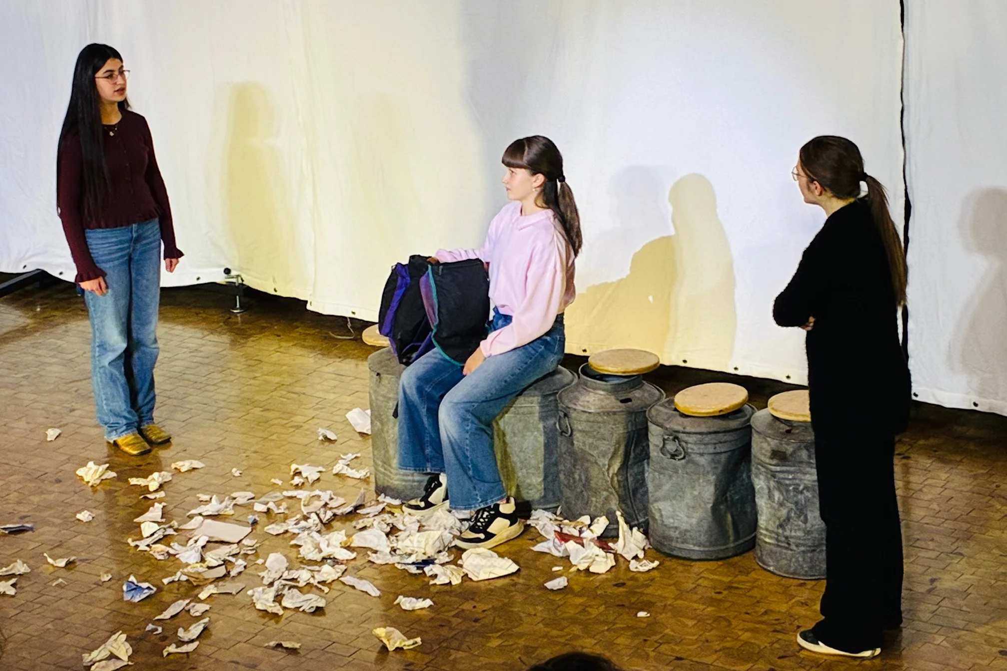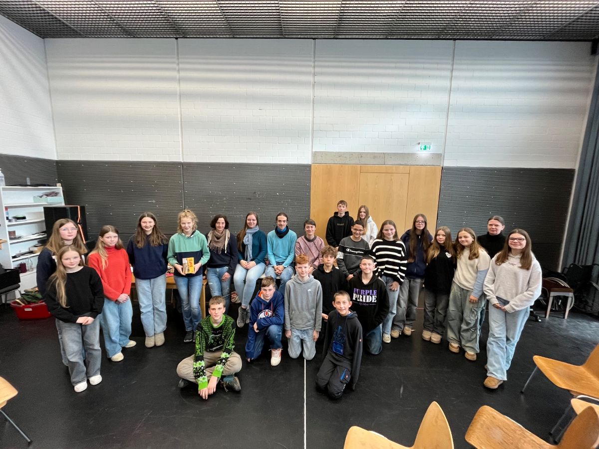Am Freitag, den 05.12.2025, erhielt die Klasse einen exklusiven Einblick in die Theaterarbeit. Sie durfte an einer echten Theaterprobe teilnehmen und miterleben, wie Regie und Schauspiel zusammenwirken, um eine Szene zum Leben zu erwecken. Anschließend stand die Klasse in einer Fragerunde den beiden Regisseurinnen, Frau Zamani sowie Frau Masaryk und dem Schauspieler Herr Etienne Moussou des Stücks gegenüber.