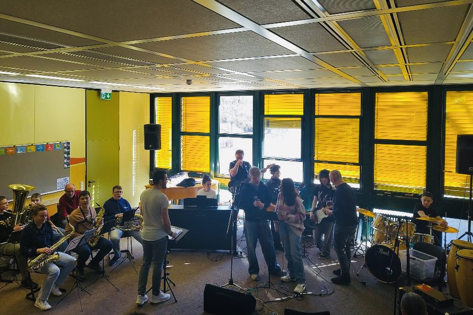 Ein Jahr nach dem ersten erfolgreichen Bandcoaching verwandelte sich der Musiksaal der Realschule Hof erneut in eine kleine professionelle Probenbühne. Auch diesmal arbeiteten die Schulband der Realschule und die Band des Reinhart-Gymnasiums gemeinsam mit den beiden Coaches Oliver Schmidt und Harry Tröger – ein bewährtes Konzept, das sich bereits im vergangenen Jahr als äußerst gewinnbringend erwiesen hatte.