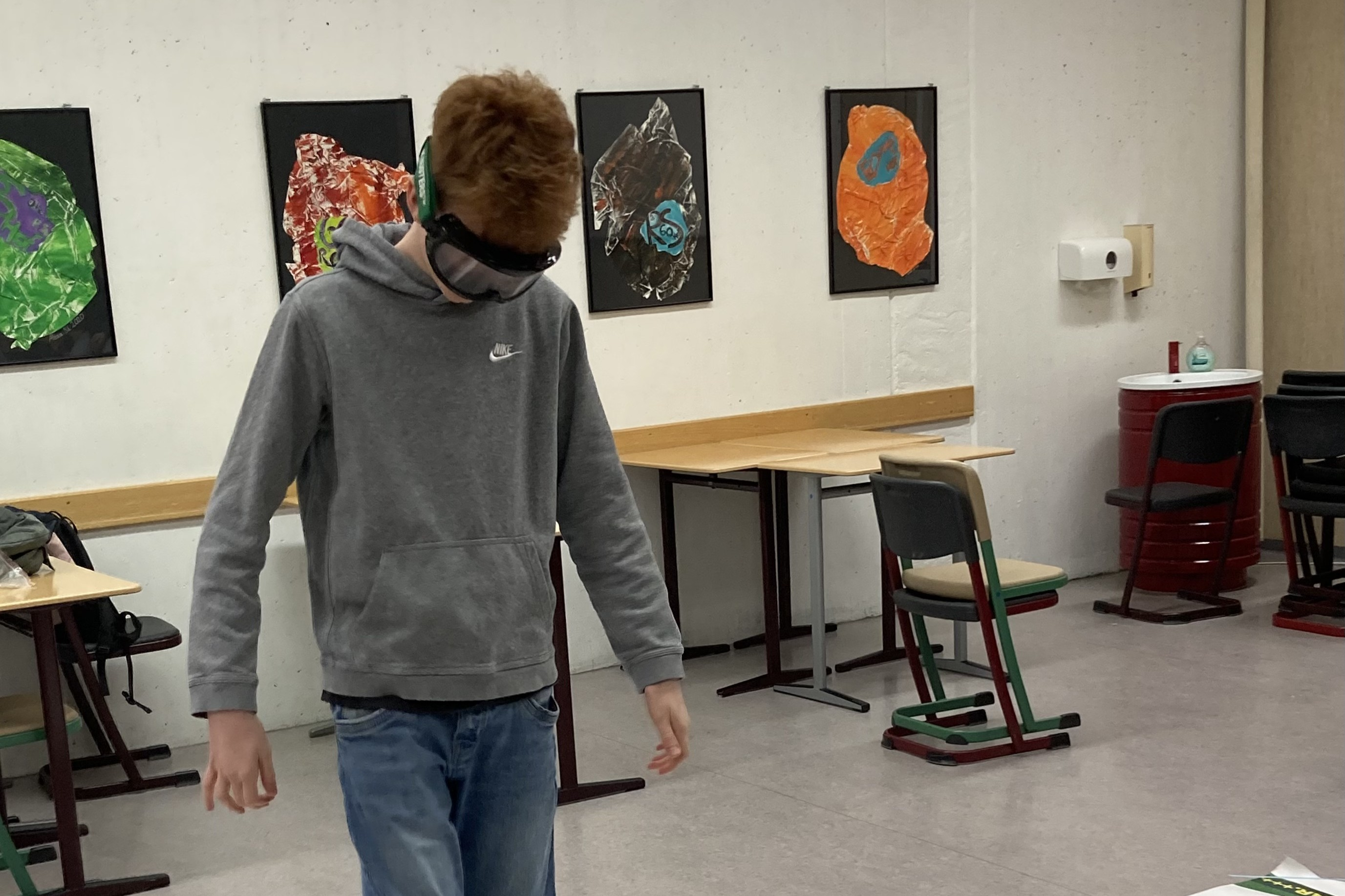 In der 3. und 4. Stunde folgte ein abwechslungsreicher Parkour mit Unterstützung von Sozialarbeitern. An mehreren Stationen setzten sich die Jugendlichen mit den Themen Zigaretten, Alkohol, Werbung und andere Rauschmittel auseinander. Besonders eindrucksvoll war die Station mit der Alkoholbrille, bei der die Schülerinnen und Schüler selbst erleben konnten, wie stark Alkohol die Wahrnehmung und Koordination beeinträchtigt. Zudem erarbeiteten sie mithilfe von Kärtchen Fallbeispiele, um zu verstehen, wie eine Sucht entstehen kann. Zu Beginn und am Ende dieser Einheit warfen die Schülerinnen und Schüler Kugeln in Behälter mit den Antworten „Ja“, „Nein“ oder „Vielleicht“ zu der Frage: Ist es für dich okay, wenn deine Freunde rauchen? – so konnten sie ihre veränderte Sichtweise reflektieren.