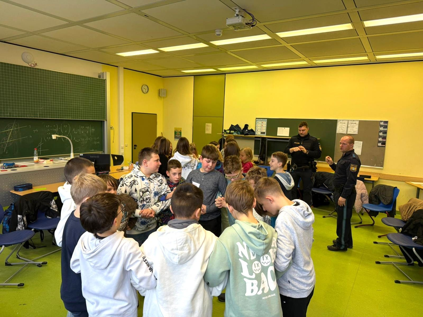 Im Rahmen des PIT-Projekts nahmen unsere fünften Klassen an einem Kurs zur Prävention von Gewalt teil. Durchgeführt wurde das Seminar von der Polizei Hof. Dabei setzten sich die Schülerinnen und Schüler anhand praxisnaher Fallbeispiele mit der Frage auseinander, was Gewalt eigentlich ist. So ordneten sie zum Beispiel verschiedene Situationen ein, diskutierten unterschiedliche Sichtweisen und sammelten gemeinsam verschiedene Formen von Gewalt. In weiteren Übungen stellten die Kinder Begriffe und Gefühle körpersprachlich dar und lernten so, auf Mimik und Gestik zu achten, um Emotionen frühzeitig zu erkennen.