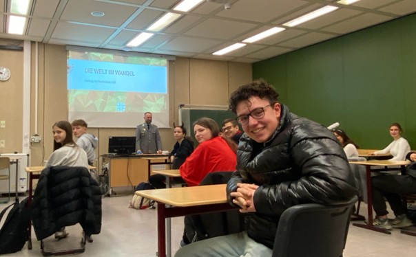 Auch in diesem Schuljahr war der Jugendoffizier Dhany Sahm an unserer Schule zu Gast. In jeweils einer Doppelstunde sprach er vor allen drei zehnten Klassen. Ziel der Veranstaltung war es, den Schülerinnen und Schülern Einblicke in aktuelle sicherheitspolitische Fragen, internationale Bündnisse und gegenwärtige Konflikte zu geben – Themen, die im regulären Lehrplan oft nur am Rand Platz finden. Sahm versteht seine Aufgabe deshalb darin, Politik anschaulich zu vermitteln, Hintergründe zu erklären und vor allem Diskussionen zu ermöglichen.