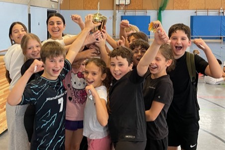 Das große Finale versprach besondere Spannung: Das gelbe Team der Klasse 5c traf auf das Team unserer „Deutschklasse“, das bis dahin ungeschlagen durch das Turnier marschiert war. Doch im entscheidenden Moment gelang dem gelben Team die Sensation – sie besiegten die Favoriten und holten den Pokal für die Klasse 5c! Alle haben neues gelernt und haben sich gegenseitig unterstützt.